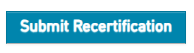 Once you have entered the appropriate number of credits, then the submit recertification button will be clickable and you can proceed to the payment screen.