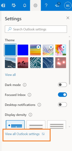 - Click the gear icon in Outlook and select "View all Outlook settings."