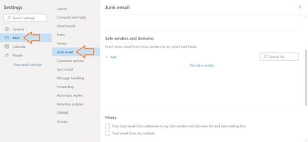 This will save your whitelist preferences and ensure that emails that fit the criteria don't make it to your junk email folder in Outlook.