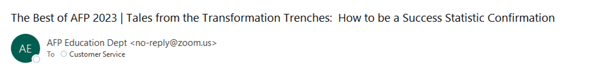 You will receive an AFP confirmation email for your purchase that includes a link for the Best of AFP 2023 Series Portal.